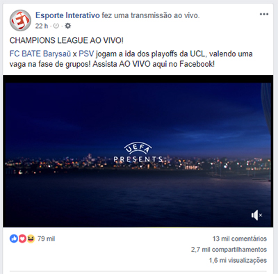 As pessoas são bem engajadas com Champions League. E essa transmissão era apenas para uma vaga na fase de grupos!