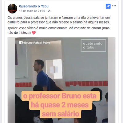 “Os alunos dessa sala se juntaram e fizeram uma rifa para levantar um dinheiro para o professor que não recebe o salário há alguns meses”