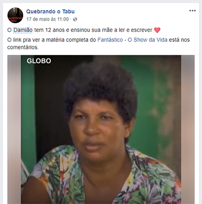 “O Damião tem 12 anos e ensinou sua mãe a ler e escrever”
