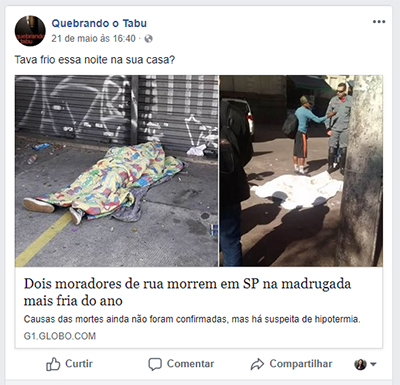 “Dois moradores de rua morrem em SP na madrugada mais fria do ano”