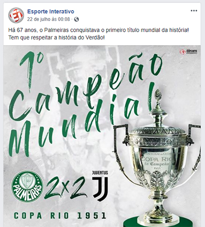 “Há 67 anos, o Palmeiras conquistava o primeiro título mundial da história! Tem que respeitar a história do Verdão!”