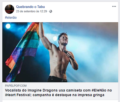“Vocalista do Imagine Dragons usa camiseta com #EleNão no iHeart Festival”