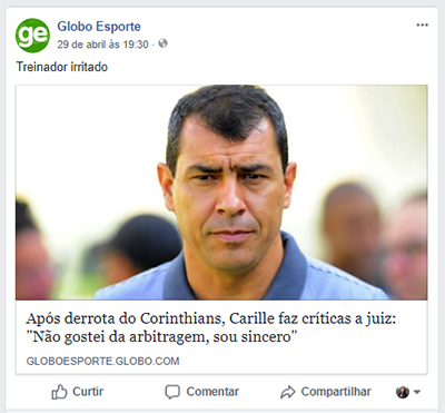 “Após derrota do Corinthians, Carille faz críticas a juiz: ‘Não gostei da arbitragem, sou sincero’”