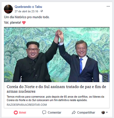 “Coreia do Norte e do Sul assinam tratado de paz e fim de armas nucleares”