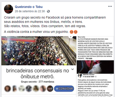Existe um grupo secreto no Facebook para que homens possam compartilhar seus relatos de assédios a mulheres no transporte público. É nojento, é repugnante.