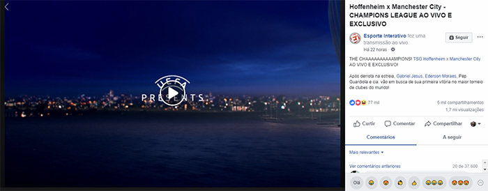 A página do Esporte Interativo transmite oficialmente os jogos da Champions League e costuma gerar muito engajamento entre os internautas durante as partidas.