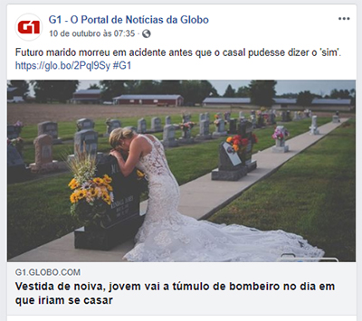 “Em novembro do ano passado, Murphy, de 27 anos, não resistiu a um acidente provocado por um colega que dirigia bêbado e bateu em três carros. […] Para honrar a memória de quem seria seu futuro marido, Jessica visitou o túmulo de Murphy vestida de noiva, e os convidados também foram, para dar apoio.”