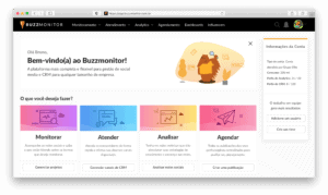 A nova interface oferece um resumo com dados e as principais configurações e possibilidades que o Buzzmonitor oferece para Monitoramento, Atendimento, Analytics e Agendamento. Com isso, seu time acessa o que quiser com mais facilidade.
