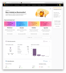 A página inicial do Buzzmonitor foi reimaginada para te oferecer uma visão geral sobre os módulos de gestão da sua marca.