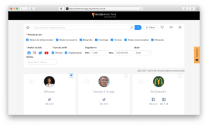 - Nova disposição dos filtros – O menu do Influencers foi alterado para facilitar a visualização e escolha dos filtros disponíveis.