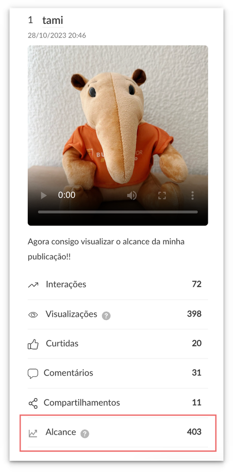Na aba de Conteúdo, as visualizações também podem ser acompanhada nas interações listadas nos Top Posts.