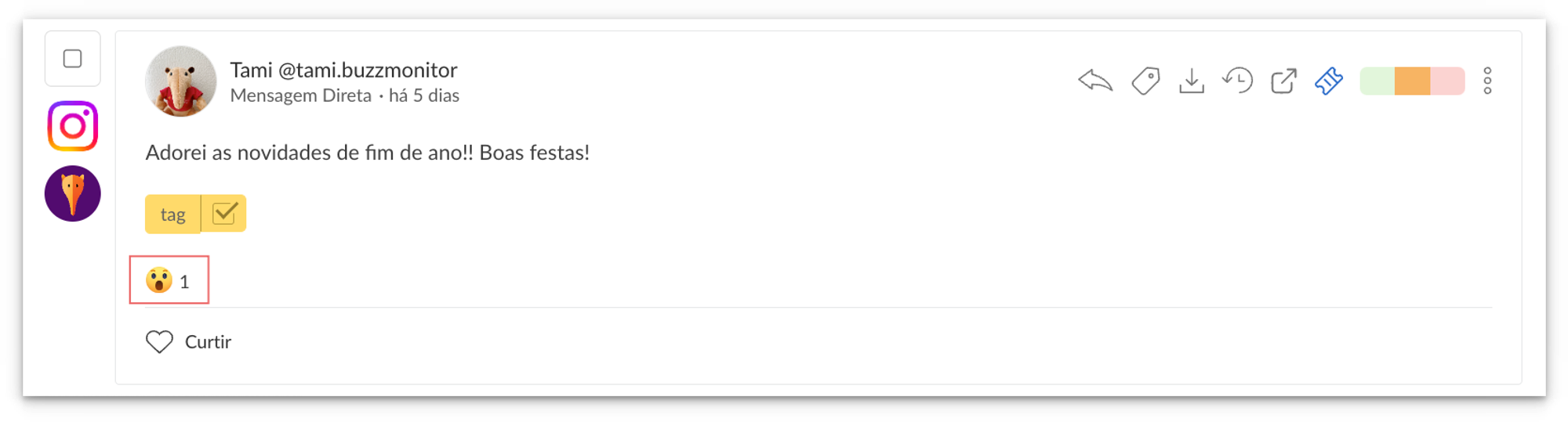 Aprimoramos a coleta de mensagens diretas de Instagram contabilizando e exibindo na interação as reações adicionadas pelos participantes da conversa.