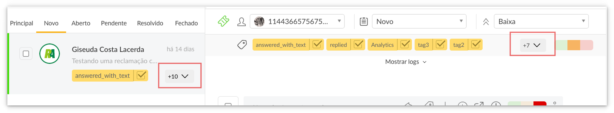 • Introduzimos um contador de tags para evitar que tickets com um grande número de tags ocupem excessivamente a tela. Esse recurso ajuda a manter a interface limpa e organizada, facilitando a identificação rápida e eficiente de informações importantes.