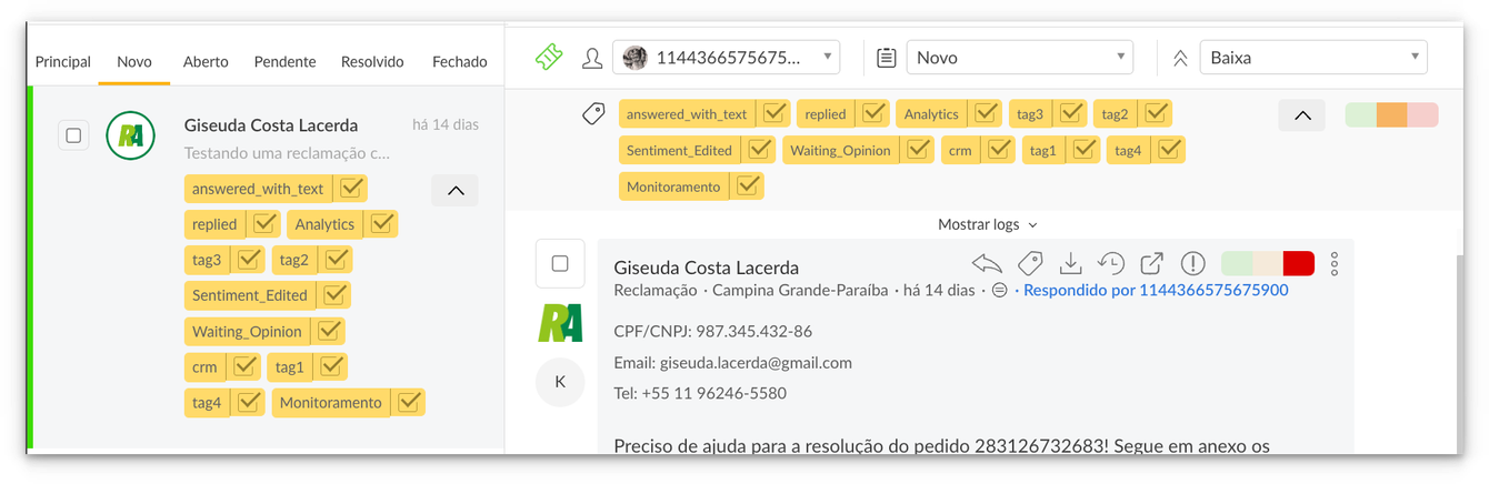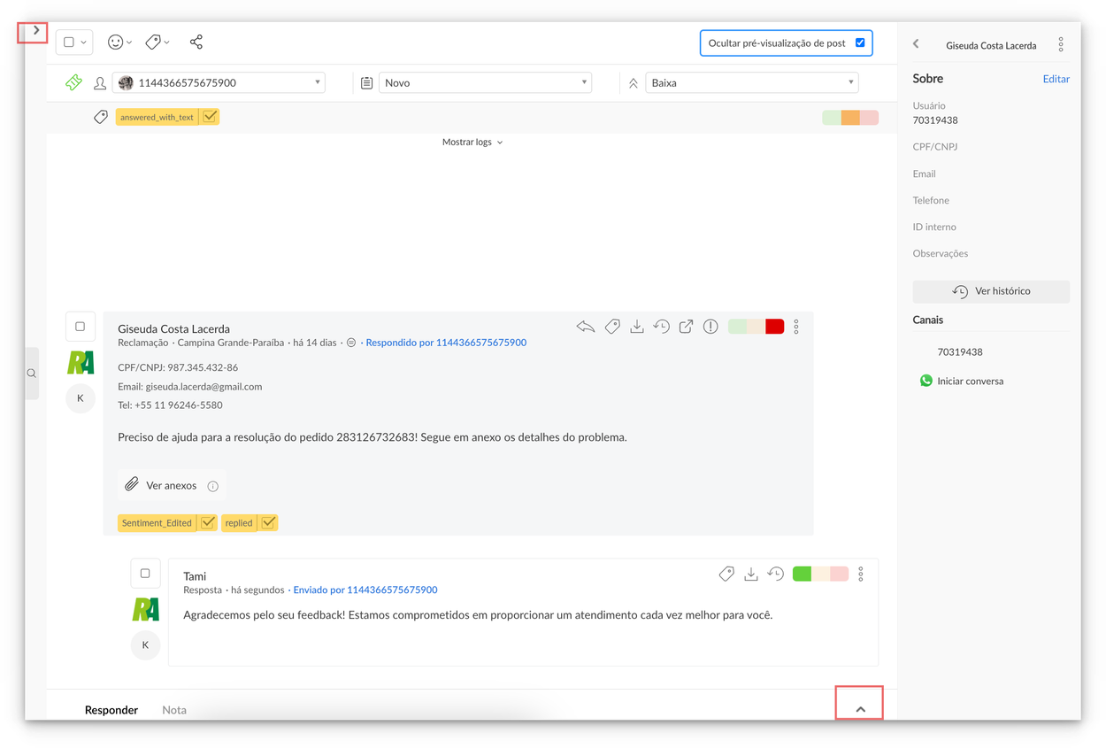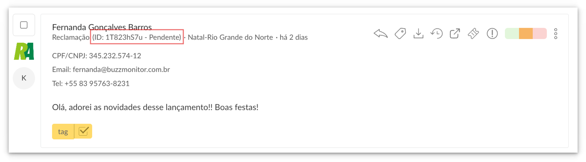 Aprimoramos a coleta de dados no Reclame Aqui ao incorporar os detalhes do ID e status do ticket criado, juntamente com a nota da avaliação feita pelo usuário. Isso proporciona uma visão mais abrangente e completa da resolução das interações, permitindo uma análise mais detalhada do feedback dos usuários.