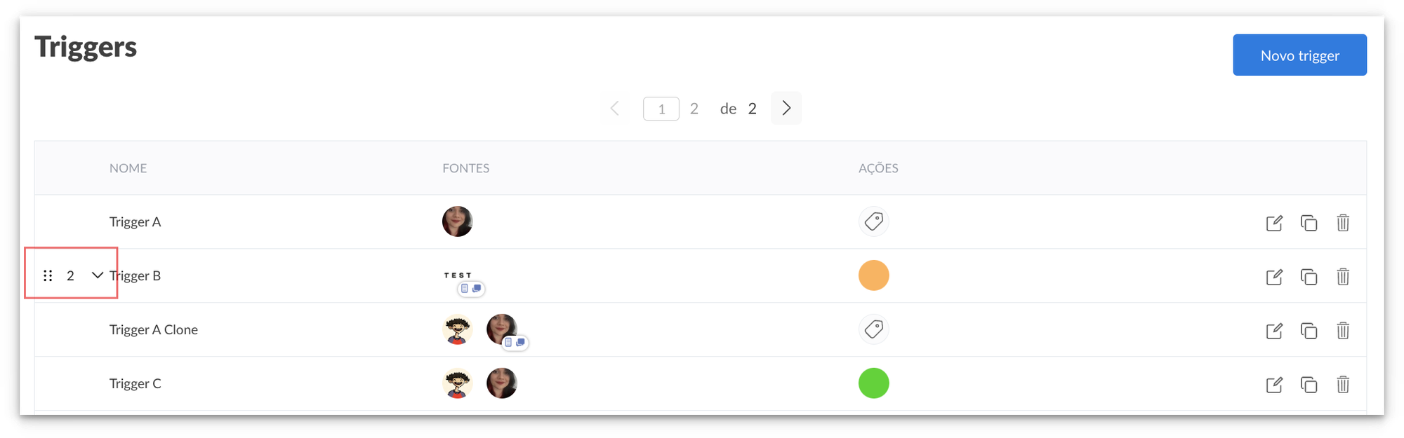 Com o objetivo de aprimorar a eficiência e agilizar a gestão dos triggers, introduzimos a paginação na lista de triggers. Agora, é possível organizar a prioridade dos triggers exibidos na página atual por meio do recurso de arrastar, ou utilizar o menu suspenso para definir a prioridade geral do trigger entre diferentes páginas. Isso proporciona maior flexibilidade e controle na configuração dos triggers.