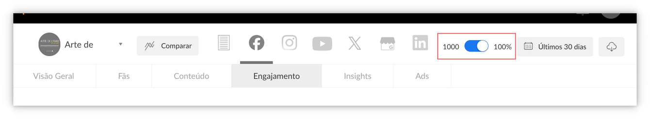 Uma nova funcionalidade foi integrada ao Analytics Pro, dando aos usuários a flexibilidade de converter as métricas de engajamento de “divisão por 1000 usuários” para “divisão por 100”, exibindo os resultados em formato percentual. Essa opção foi pensada para tornar a compreensão das métricas mais direta e intuitiva, simplificando a interpretação e análise dos dados.