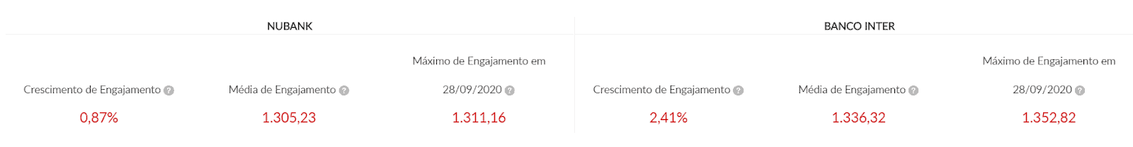 Fig.2: Dados de engajamento dos dois bancos entre os dias 29/08 até 28/09.