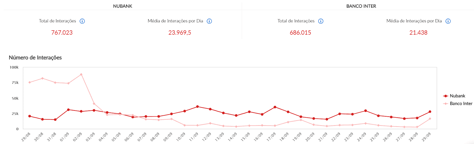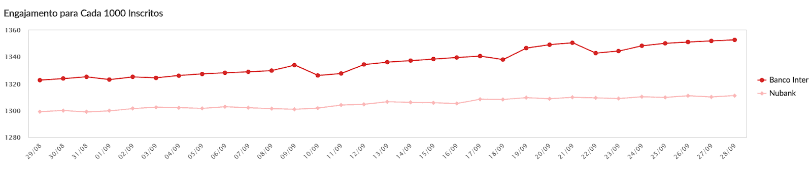 Fig.3: Gráfico de engajamento dos dois bancos entre os dias 29/08 até 28/09.