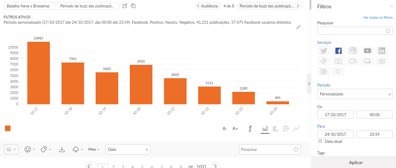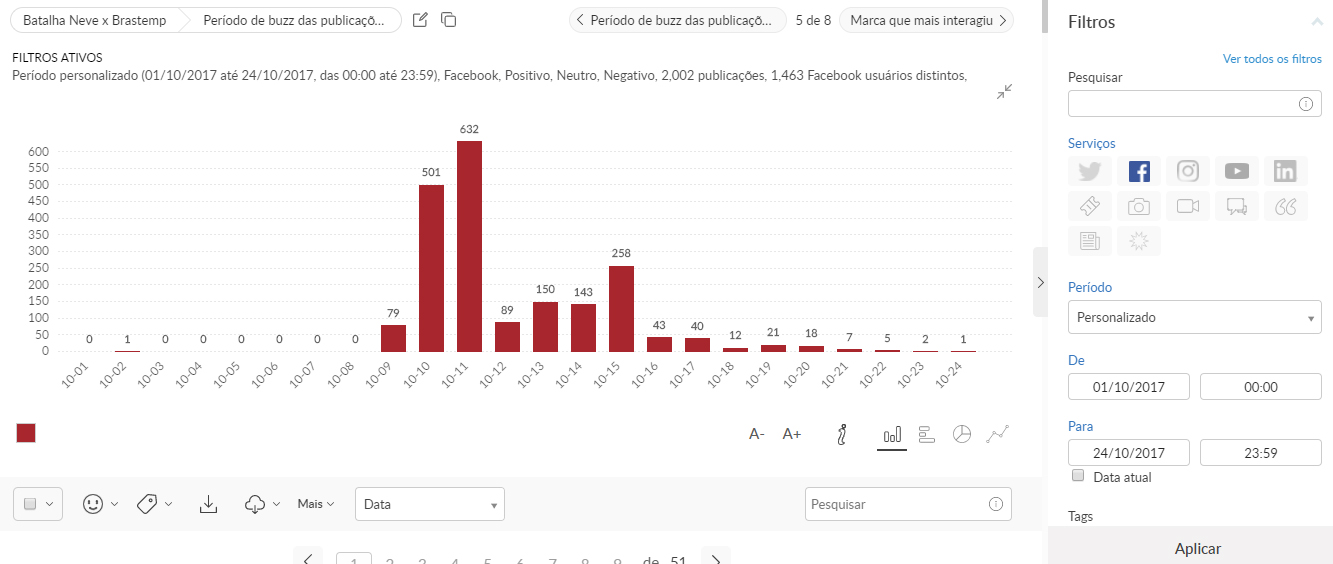 Já a publicação de Neve foi feita no dia 02 de outubro, mas apenas começou a ter um buzz considerável no dia 10, o que nos leva a crer que ou a publicação foi impulsionada ou os internautas começaram a viralizá-la a partir desta data.