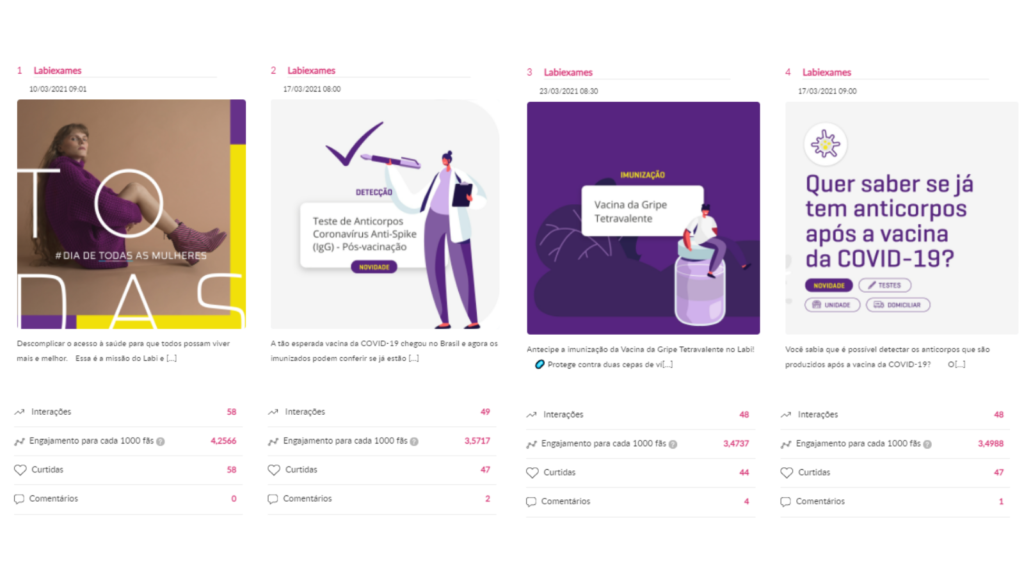 Além do maior engajamento, a Labi exames também teve mais interações nos posts do período.