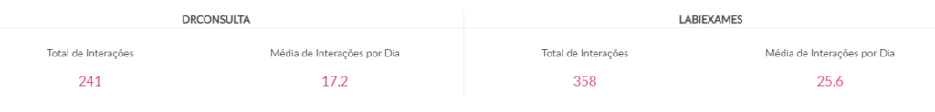 Labi Exames | 358 interações (média de 25,6 por dia) |