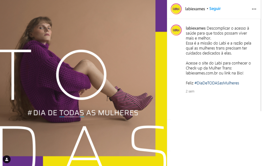 Post 1 – O post mais engajado também foi sobre o Dia Internacional da Mulher, mas com outro foco. A marca abordou a importância dos exames feitos para analisar a saúde da mulher e também sobre um check-up de mulheres Trans.