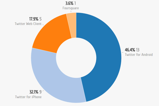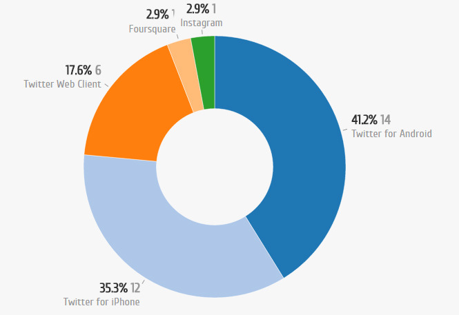 Dos que mencionam Los Paleteros, 41,2% utiliza Twitter for Android, 35,3%, dispositivos iOS e 17,6% o Twitter Web Client.