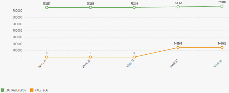Ainda que tenha sofrido redução no engajamento da página, Los Paleteros apresentou crescimento no número de fãs (21.223, durante o período monitorado). O contrário ocorreu a Paleteca, que obteve crescimento no engajamento da página, mas sofreu uma queda de 0,07% no número de fãs, equivalente a 194 pessoas.