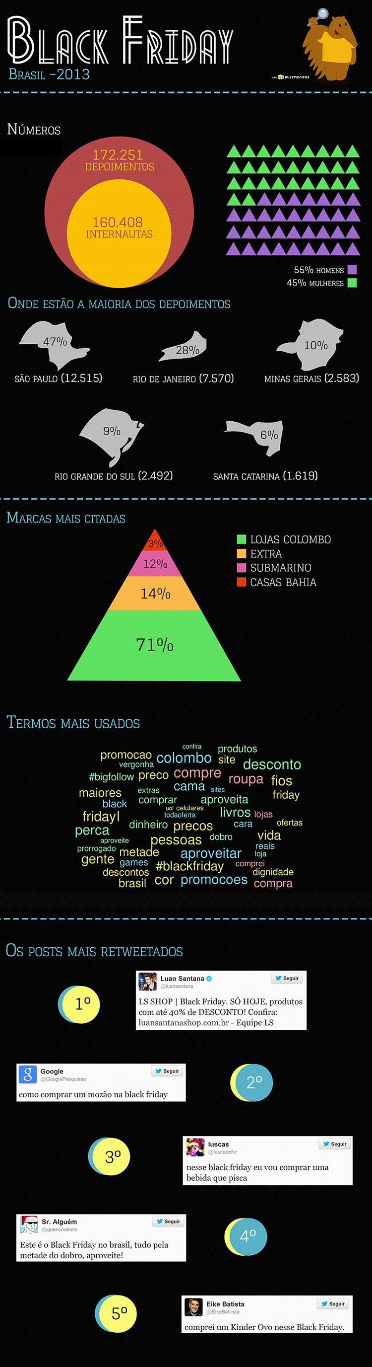 Postado em Monitoramento Por Thamires OliveiraPostado em 2 de dezembro de 201321 de outubro de 2020Marcado Monitoramento Redes SociaisInfográfico: Black Friday Brasil 2013 Related posts:Demonstrações de afeto e reforçadores de conteúdo foram os Emojis mais usados na América Latina nos ...Top hashtags para entender o buzz da sua marca nas redes sociaisO Cliente Pediu: Em quais dias os consumidores mais comentam ou postam na sua página do FacebookBlack Friday Brasil 2013