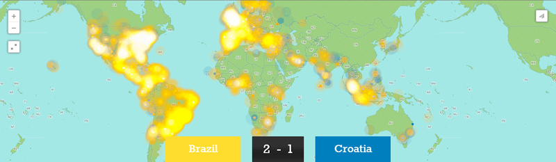 Mapa interativo: https://cartodb.com/v/worldcup/brazil-croatia/#/2/-7.9/36.9/0