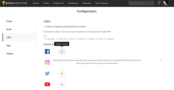 OBS: é importante que o perfil de Instagram seja sincronizado ao Buzzmonitor e que você seja administrador da conta. Veja aqui como ativar o Instagram Social CRM.