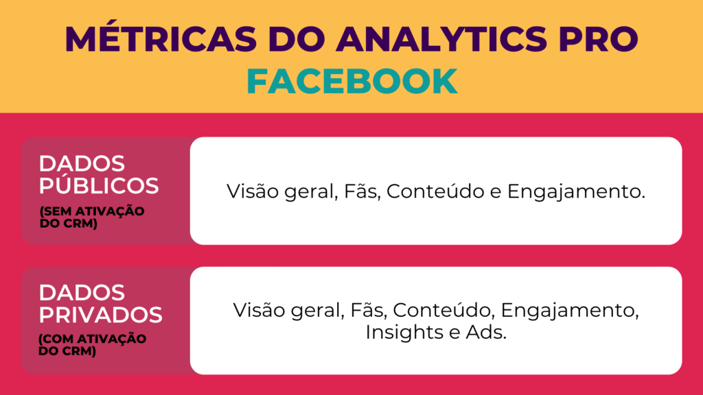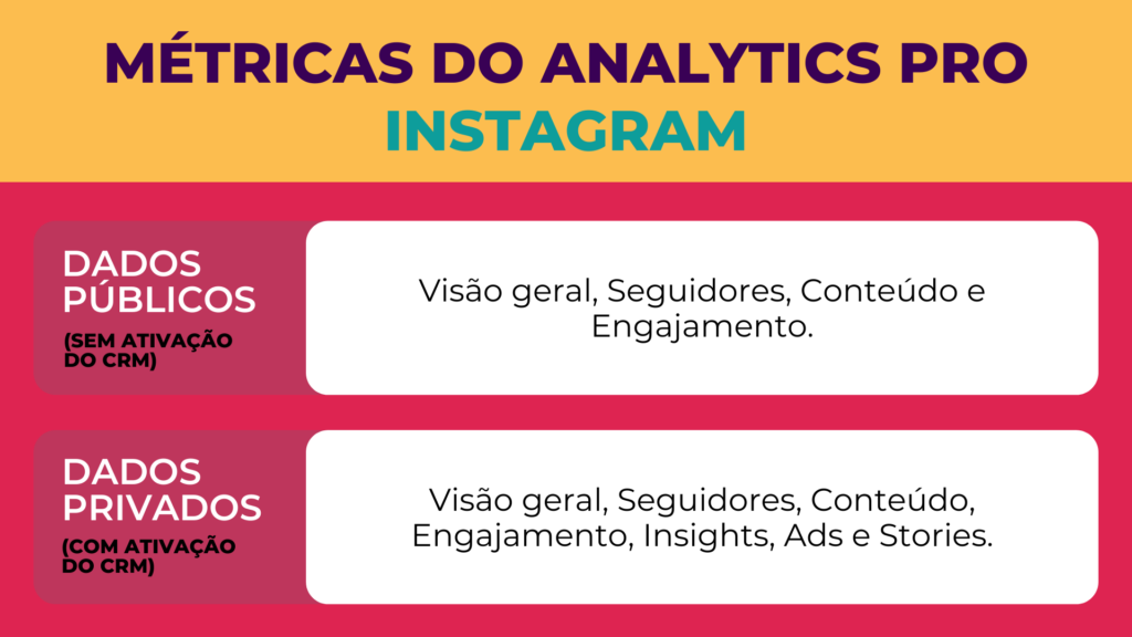 Dados Privados = As mesmas dos dados públicos + alcance, impressão, stories, dados patrocinados, investimento em mídia e muito mais