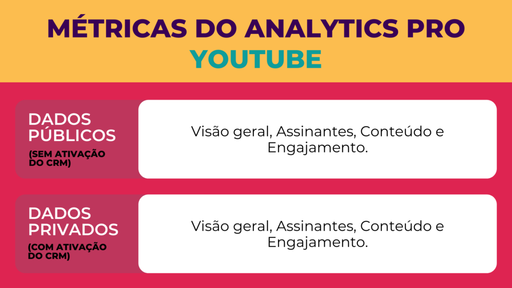 Veja quais são as métricas disponíveis para os dados públicos e privados: