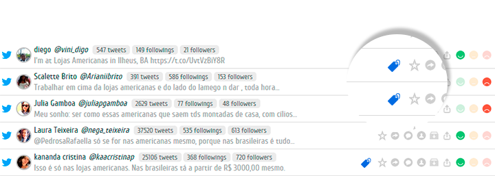 Publicações tagueadas recebem o ícone de uma etiqueta azul, facilitando a identificação pelo analista.