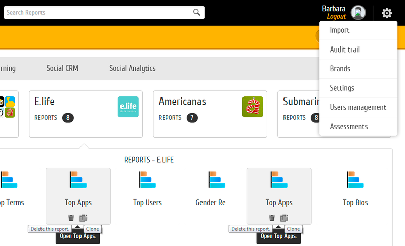 Sob cada gráfico, os relatórios podem ser clonados ou deletados graças a dois pequenos ícones adicionados para agilizar o trabalho do analista de redes sociais.