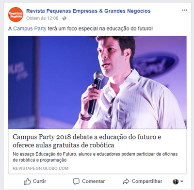 - “Campus Party 2018 debate a educação do futuro e oferece aulas gratuitas de robótica”