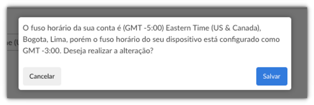 Um novo alerta será exibido caso o fuso horário configurado na conta seja diferente do fuso horário do dispositivo. Isso facilita o ajuste durante os períodos de horário de verão e garante que o fuso horário seja o mais adequado.