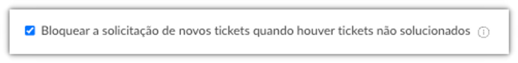 Adicionamos uma nova opção na aba de tickets, das configurações do usuário, para controlar a solicitação de novos tickets. Ao ativar essa opção, a solicitação de novos tickets será bloqueada quando houver tickets com o status aberto, novo ou pendente na fila de atendimento.