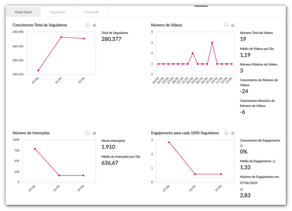 *IMPORTANTE: É a primeira fase da atualização. Por enquanto é possível visualizar apenas as abas “Seguidores” e “Conteúdo”. (Nos próximos meses teremos outros gráficos e a aba “Engajamento”).