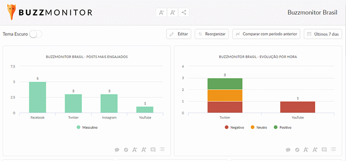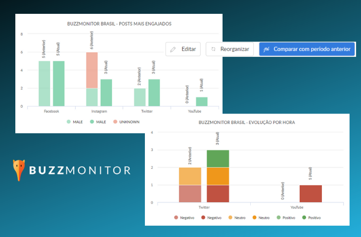 Por isso, os Dashboards do Buzzmonitor oferecem a função de comparar com o período anterior em apenas 1 clique.