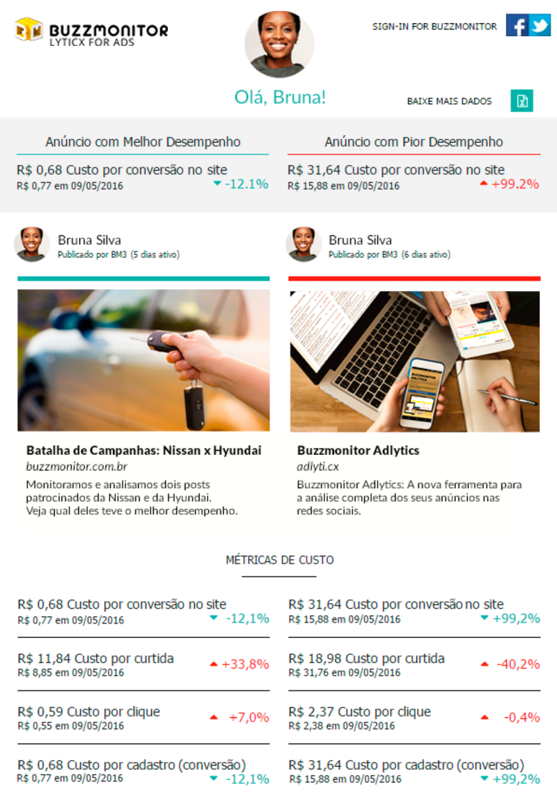 Com estas informações você saberá exatamente em qual campanha aumentar o investimento e onde cortar verba, além de entender quais os anúncios que funcionaram melhor e trouxeram mais resultados para a empresa. Saiba mais em Buzzmonitor Lyticx for Ads.