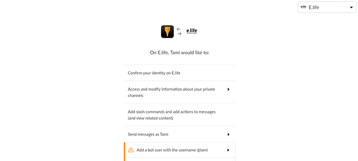 2. Você será redirecionado para uma página onde será preciso autorizar o aplicativo Tami a acessar sua conta no Slack. Revise as permissões e clique em Authorize.