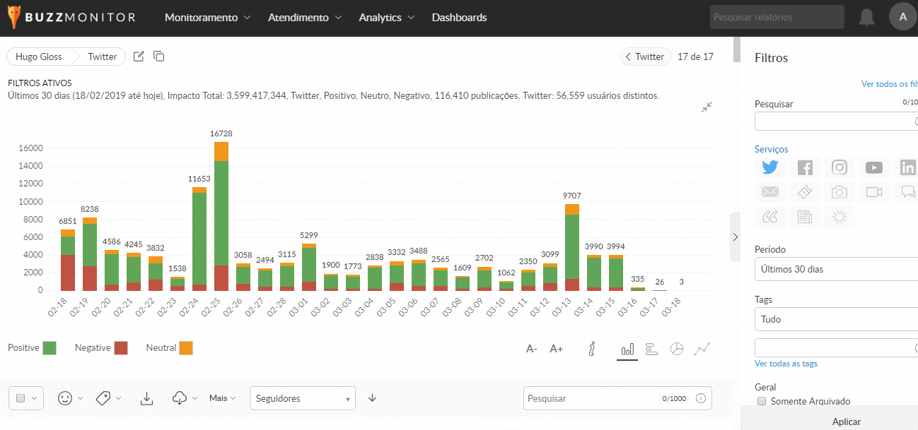 O analytics do Buzzmonitor oferece algumas métricas que ajudam a acompanhar a evolução do perfil no Twitter otimizando seu trabalho com os influenciadores encontrados na rede social.