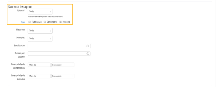 2. Role a página para baixo até a opção Somente Instagram. Em Tipo, selecione apenas a opção História para coletar apenas os Stories dos perfis.