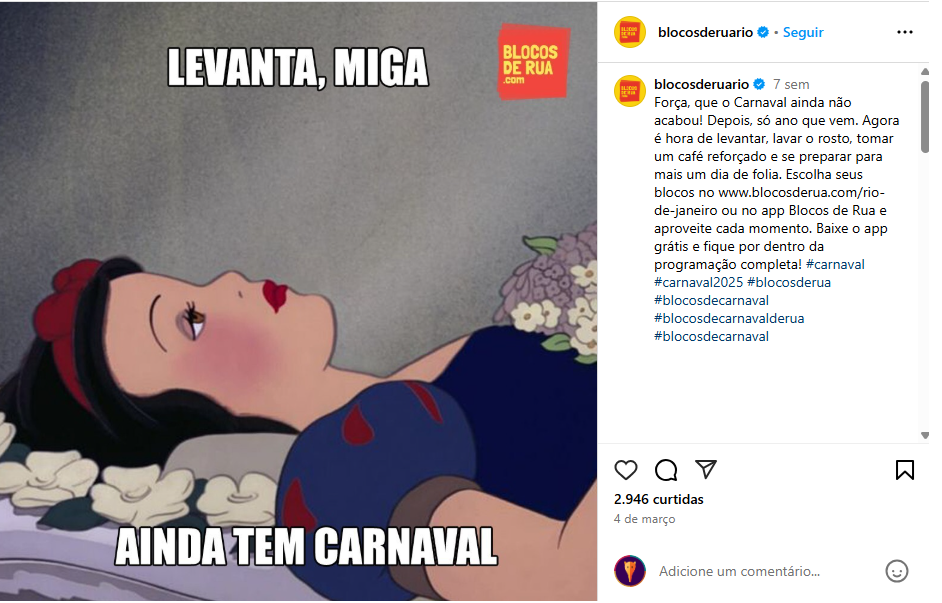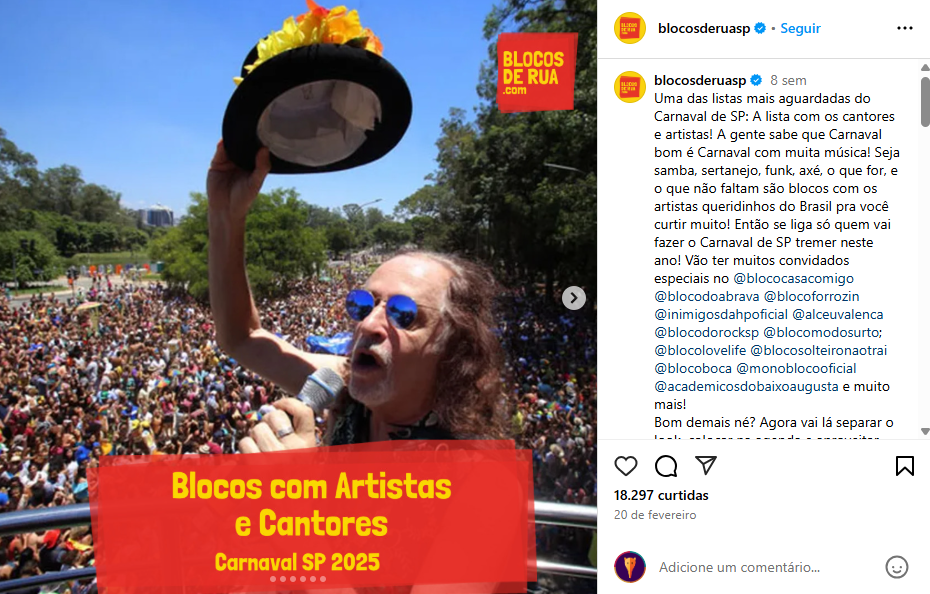 Com uma base digital ativa e engajada, a Blocos de Rua atua fortemente nas redes sociais, promovendo conteúdos que vão além da agenda: ela constrói comunidade e fortalece a relação entre o Carnaval de rua e o público apaixonado por essa manifestação cultural.