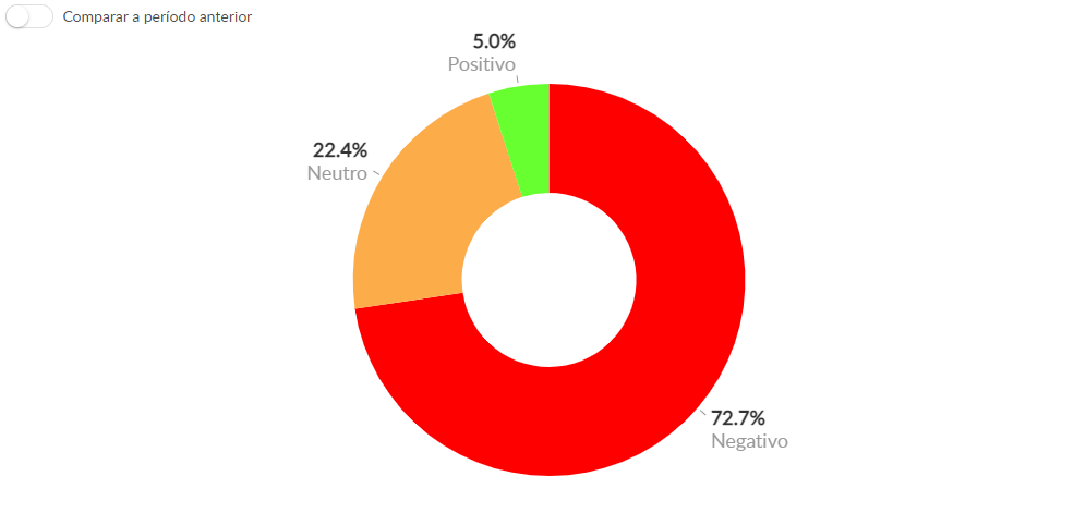 A partir dos relatórios, analisamos o período de 30 dias. Nele, coletamos 7.408 menções, dentre elas 72,7% negativas.