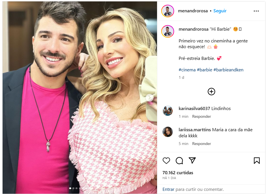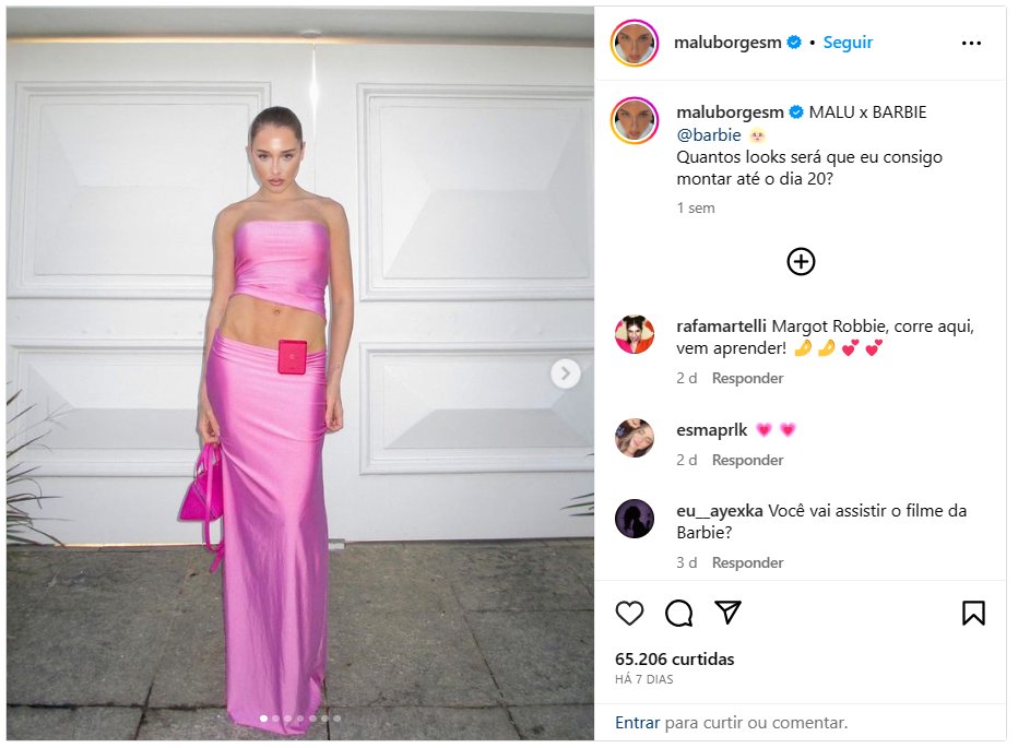 Ainda na lista de influenciadores que falaram do filme aparecem: Flávia Calina e suas filhas (71.3 mil interações), o look all pink de Malu Borges (65.4 mil interações), Mena, do Casamento às Cegas, indo na pré-estreia (63.3 mil interações) e Pequena Lo relembrando seu cosplay de Barbie (67.3 mil interações).