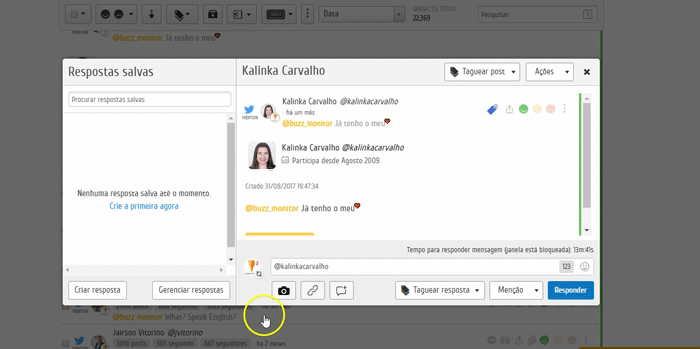 - Então é só escolher com qual conta do Twitter sincronizada ao Buzzmonitor você deseja responder e pronto!