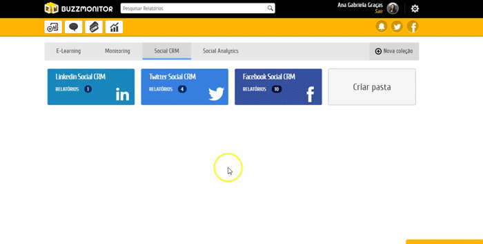 - Vá até a parte de Social CRM, selecione Twitter e em seguida um dos relatórios.