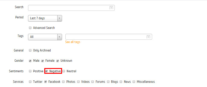 Selecione Negative, na aba Filters, para ter um report com apenas respostas negativas dentro daquele post: